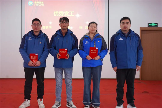 黨委書記楊凌杰為優(yōu)秀黨工頒獎(費(fèi)夢華、阮先鋒、張瑋)